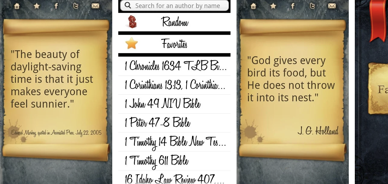 The application is easy to use, you can tap, swipe and shake to browse the pages of the quote book. There is a search where you can search for citations by author name. You can also bookmark your favorite quotes plus you can share these quotes on social media and email.