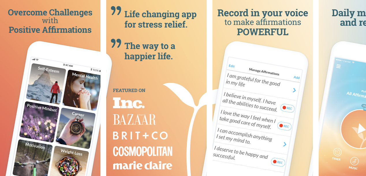 ThinkUp is a great application that can help you develop motivation and positive thinking for success in life. Using this application, you can get inspiration and personalize your statement. There are more than 300 affirmations about various life goals, such as self-esteem, motivation, depression, etc. Set up notifications and listen to daily affirmations to reduce negative thoughts.